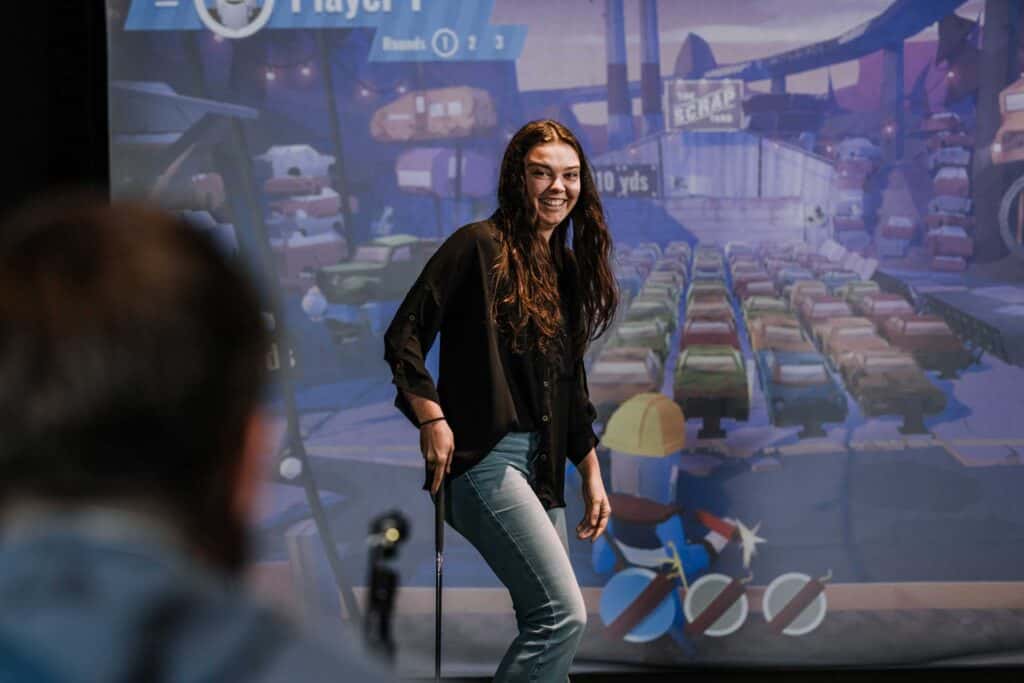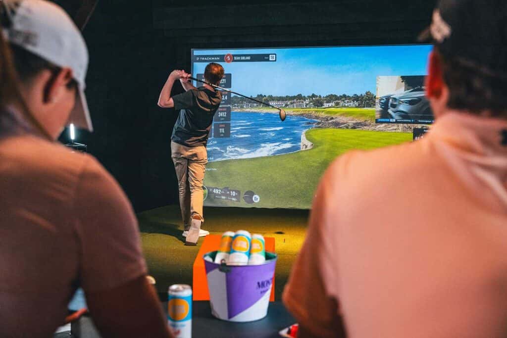 Golf simulators powered by Trackman launch monitors provide actionable data like spin rate, swing speed, club path, attack angle, and more. High-speed cameras in every bay capture a slow-motion video of every swing!