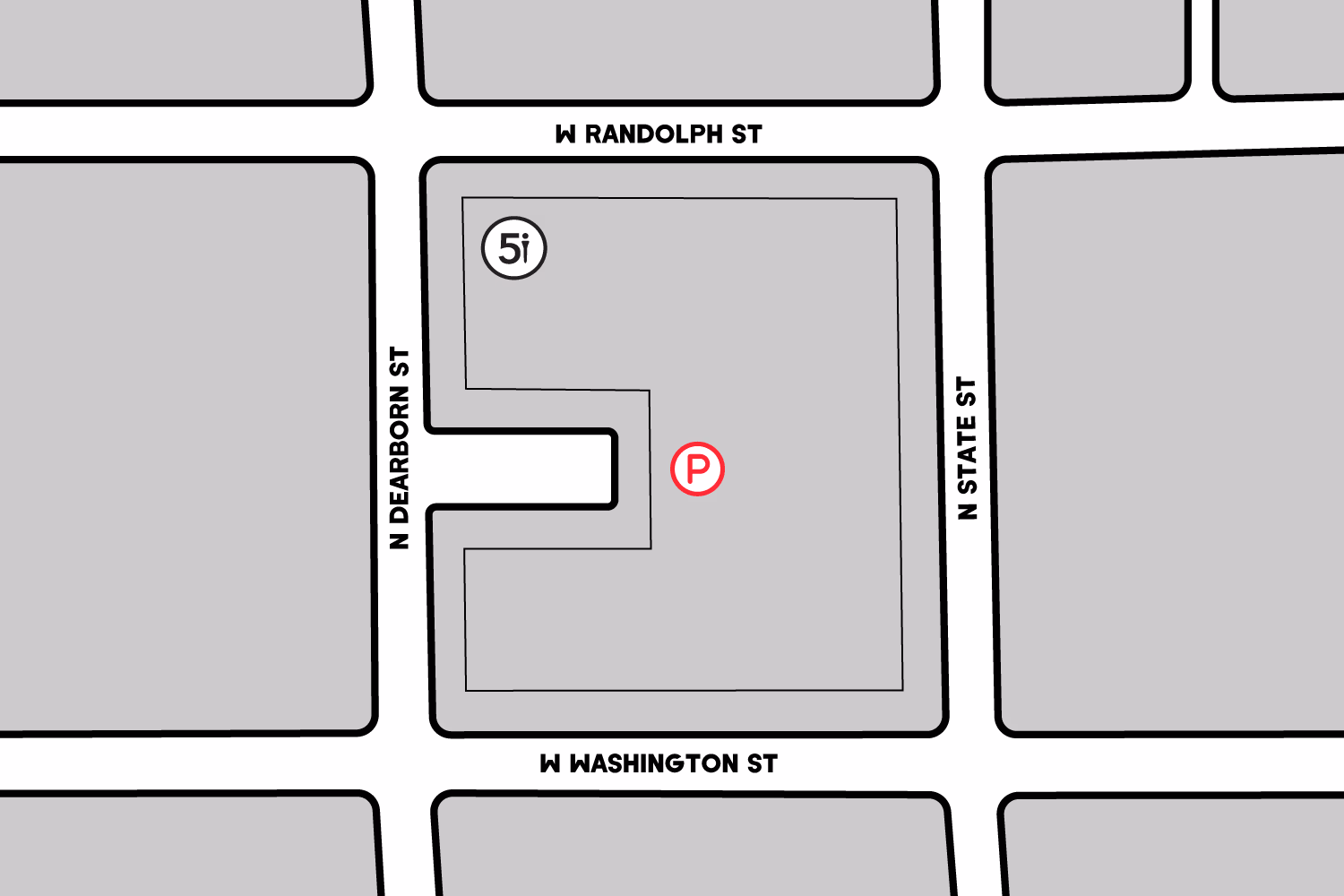 5i customers can park for free in the 4 designated spaces inside the parking garage for Block Thirty Seven, located at 115 N Dearborn St., Chicago, IL 60602.