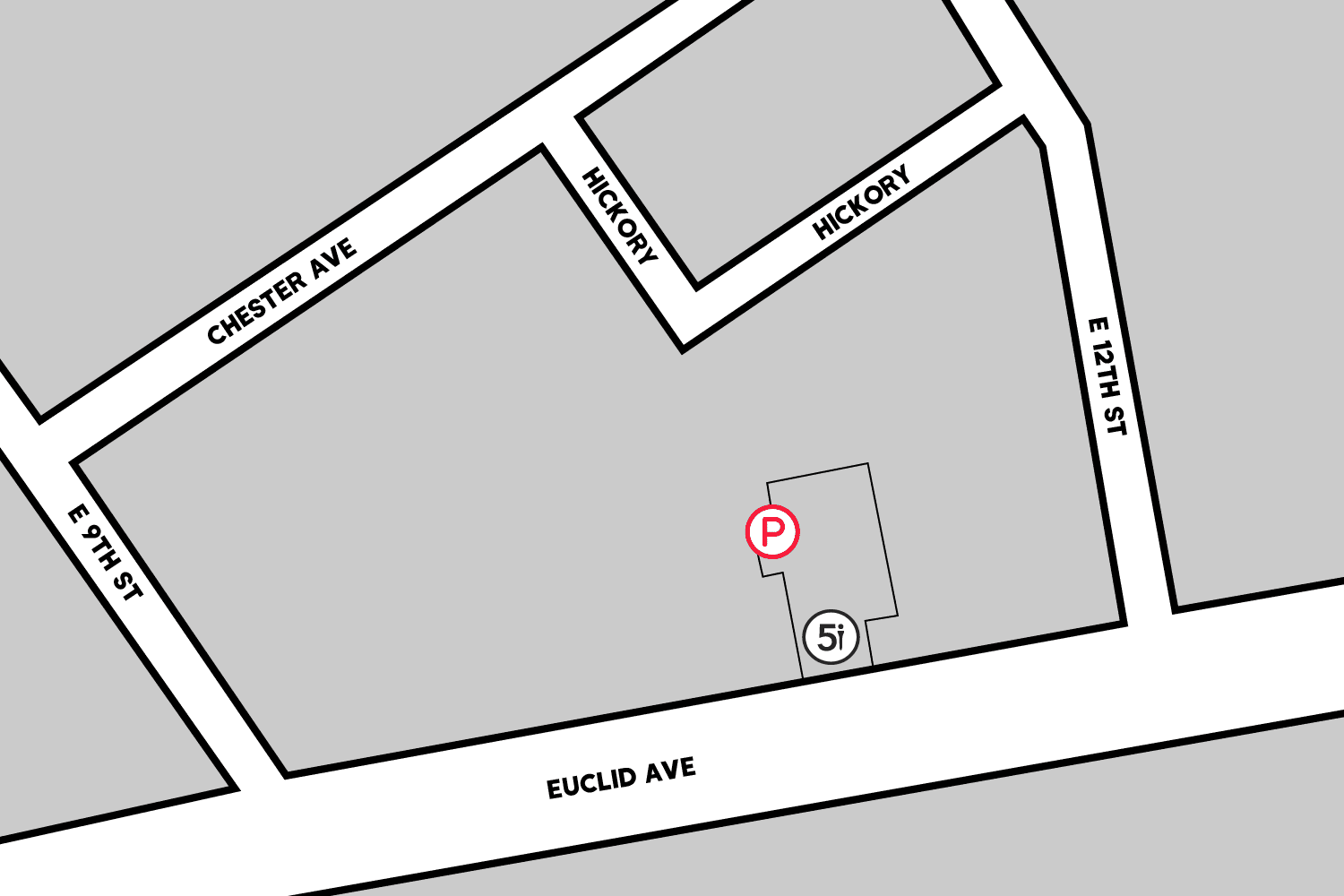 There are a limited number of free spaces reserved for 5i customers in the parking garage attached to the location. The garage is accessible via Hickory, both off of Chester Ave. and E 12th St.