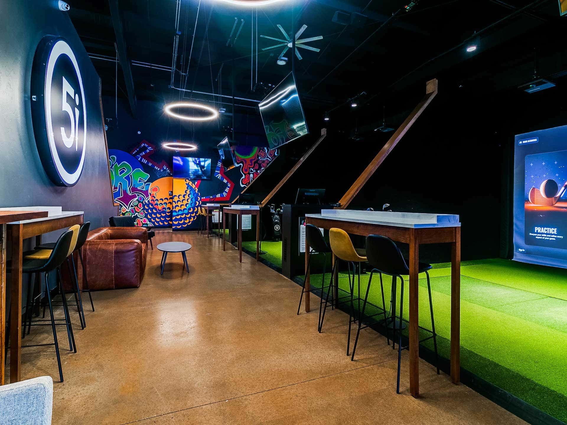 Conveniently located off West Reno Ave in Yukon, Five Iron Golf Oklahoma City offers a full-service entertainment experience featuring world-class indoor golf simulators. Step into one of 10 bays to play a round on famous PGA Tour courses like St. Andrews or Bethpage. Or, schedule a data-driven Swing Evaluation with a PGA-certified coach. From swing analysis and custom Callaway Club Fitting to group lessons and more, our venue offers multiple ways to meaningfully improve your golf game or just have a good time. Enjoy a lively sports bar and lounge with craft cocktails, delicious casual fare, and a vibrant atmosphere perfect for happy hours, date nights, corporate events, and weekend fun. With tabletop games, multi-sport simulators, and more, Five Iron Golf offers something for everyone. Become a member to enjoy exclusive access, including free golf daily plus a 20% discount on food, beverages, instruction, and league entry. Walk in, book online, or call now to reserve a bay. Five Iron Golf Yukon is ready to provide an unbeatable sports bar experience for pro golfers and beginners alike across the Oklahoma City metro area.
